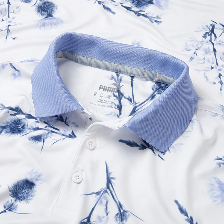 | Puma MATTR Lowlands Golf Polo Shirt Ultimate Comfort With MATTR Technology The Puma MATTR Lowlands Polo Shirt is a stylish and popular garment that is worn on tour by many players including Rickie Fowler. Released to celebrate the 2022 Open at St Andrews. Made from 92% polyester and 8% elastane, the MATTR Lowlands Polo Shirt is designed to offer the very highest levels of on-course comfort in all climate environments. MATTR represents Materials, Technology & Research, and is the performance fabric featuring technical moisture-wicking, fast-drying fabric, with breathable, 4-way stretch for ultimate comfort and a UPF rating of 50 that helps shield skin from ultraviolet rays. Finished with a self-collar, graphic thistle detail and a contrast Puma brand logo on the left sleeve for added style. Puma golf polo shirts offer the perfect combination of garment technology with a modern sporty design. |